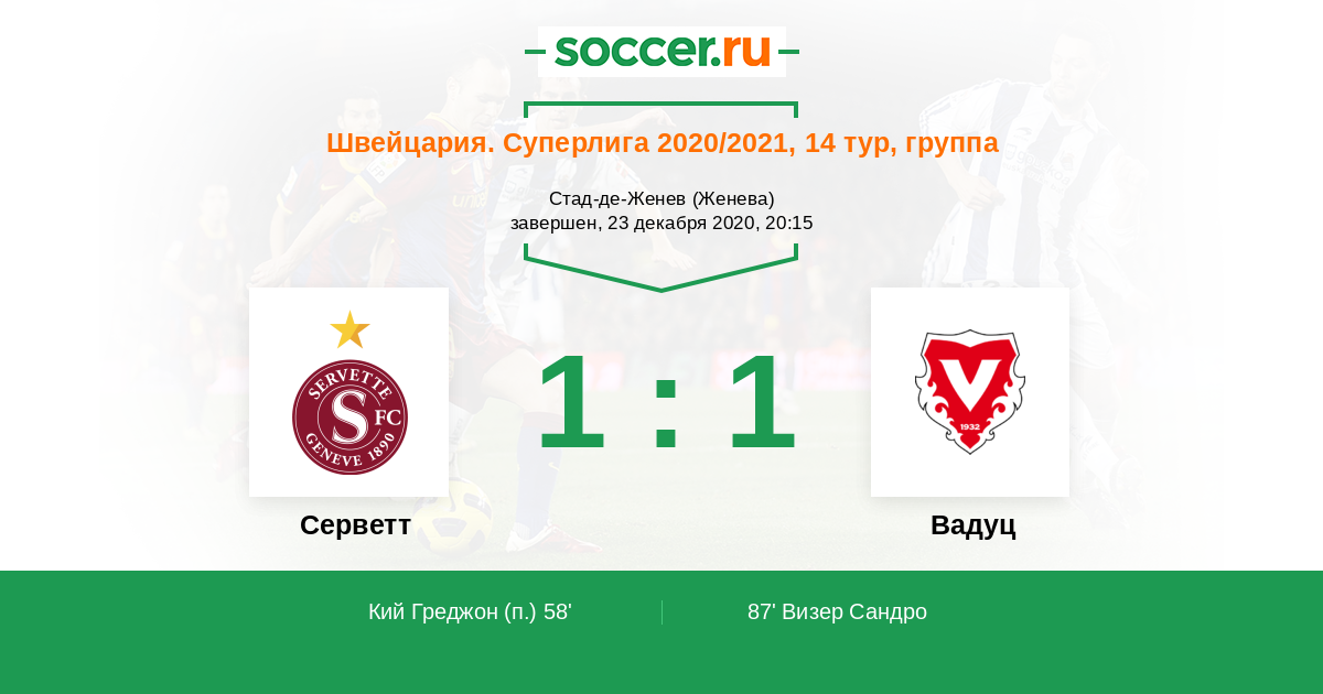 Серветт - Вадуц: обзор матча 23 декабря 2020
