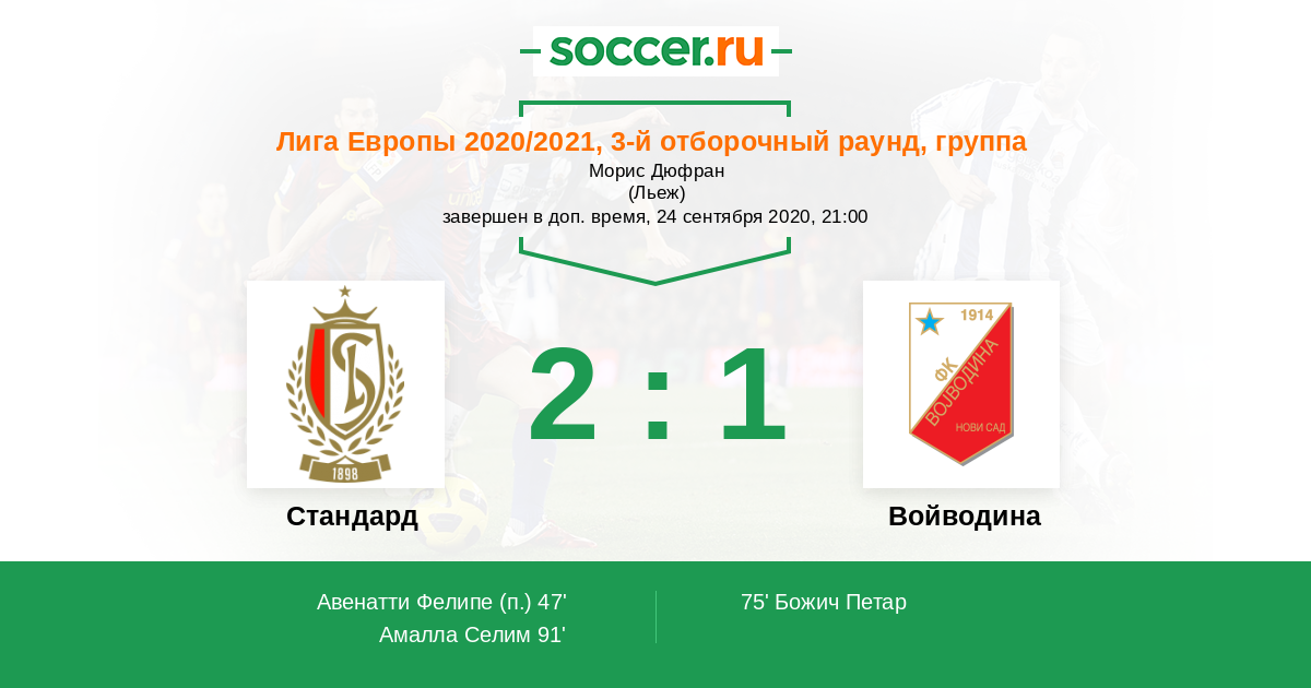 Стандард - Войводина: обзор матча 24 сентября 2020