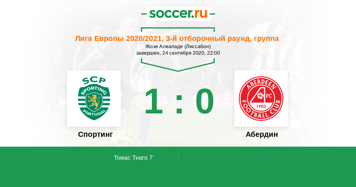 Спортинг - Абердин: обзор матча 24 сентября 2020