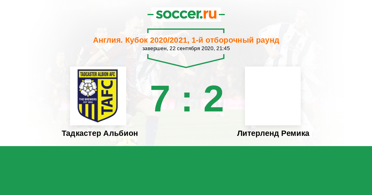 Тадкастер Альбион - Литерленд Ремика: обзор матча 22 сентября 2020