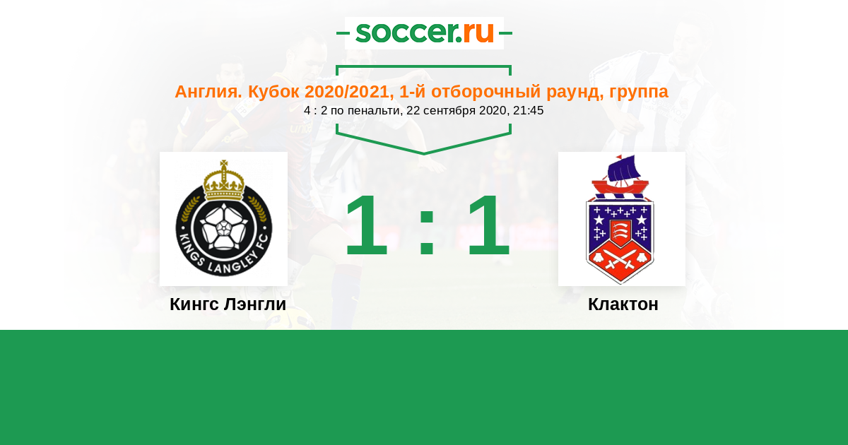 Кингс Лэнгли - Клактон: обзор матча 22 сентября 2020