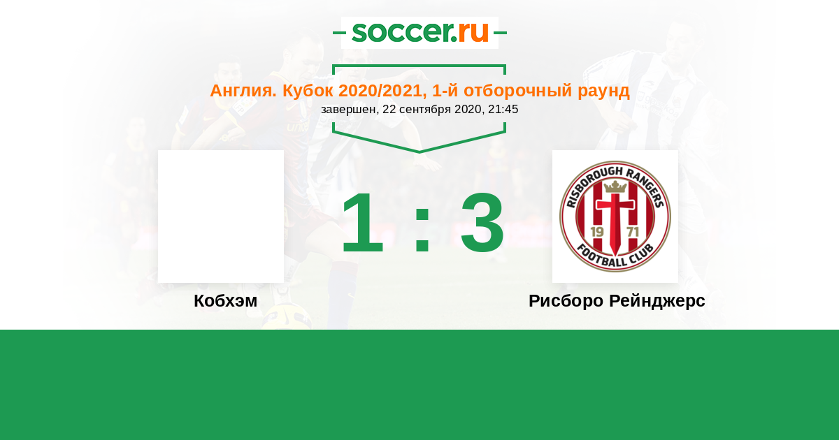 Кобхэм - Рисборо Рейнджерс: обзор матча 22 сентября 2020