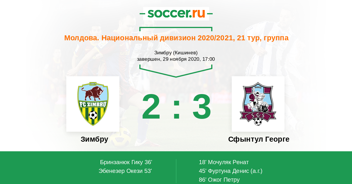Зимбру - Сфынтул Георге: обзор матча 29 ноября 2020