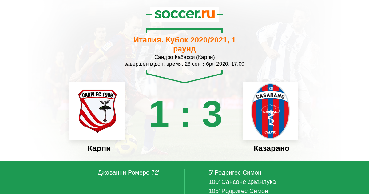 Карпи - Казарано: обзор матча 23 сентября 2020