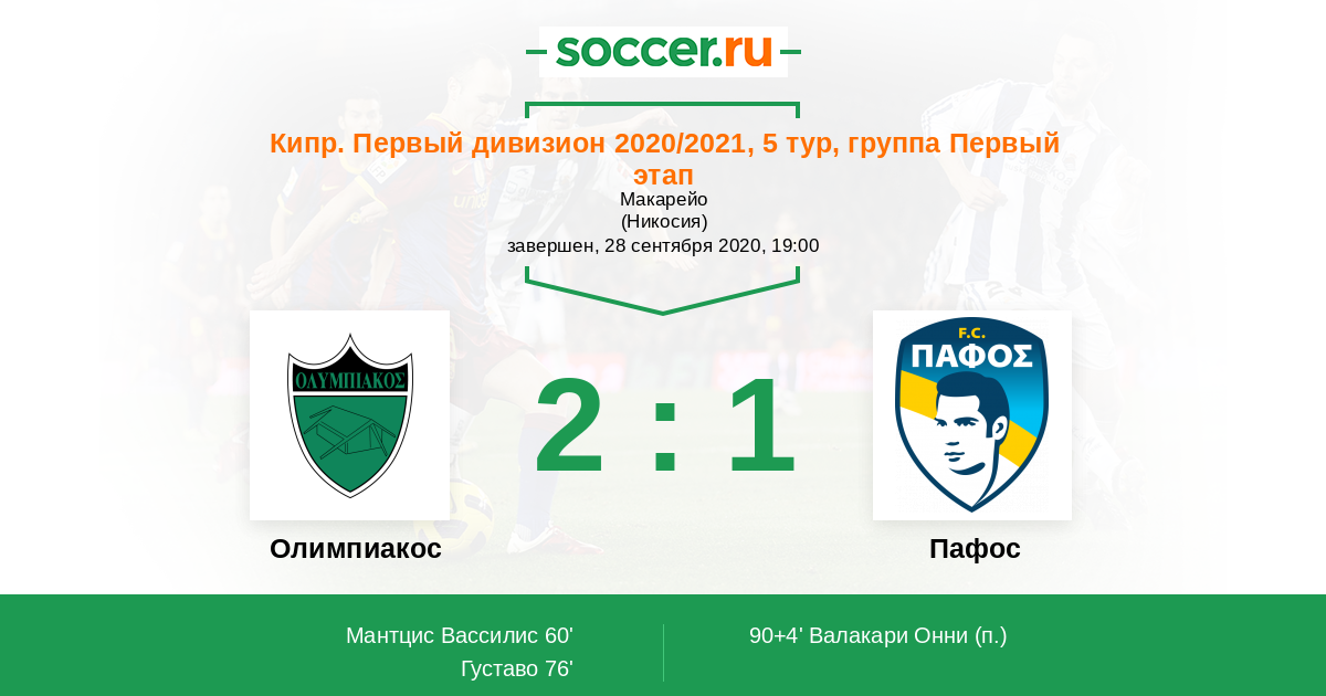 Олимпиакос - Пафос: обзор матча 28 сентября 2020