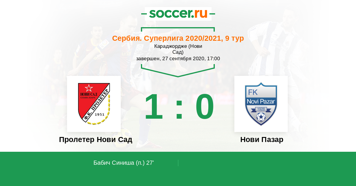 Пролетер Нови Сад - Нови Пазар: обзор матча 27 сентября 2020