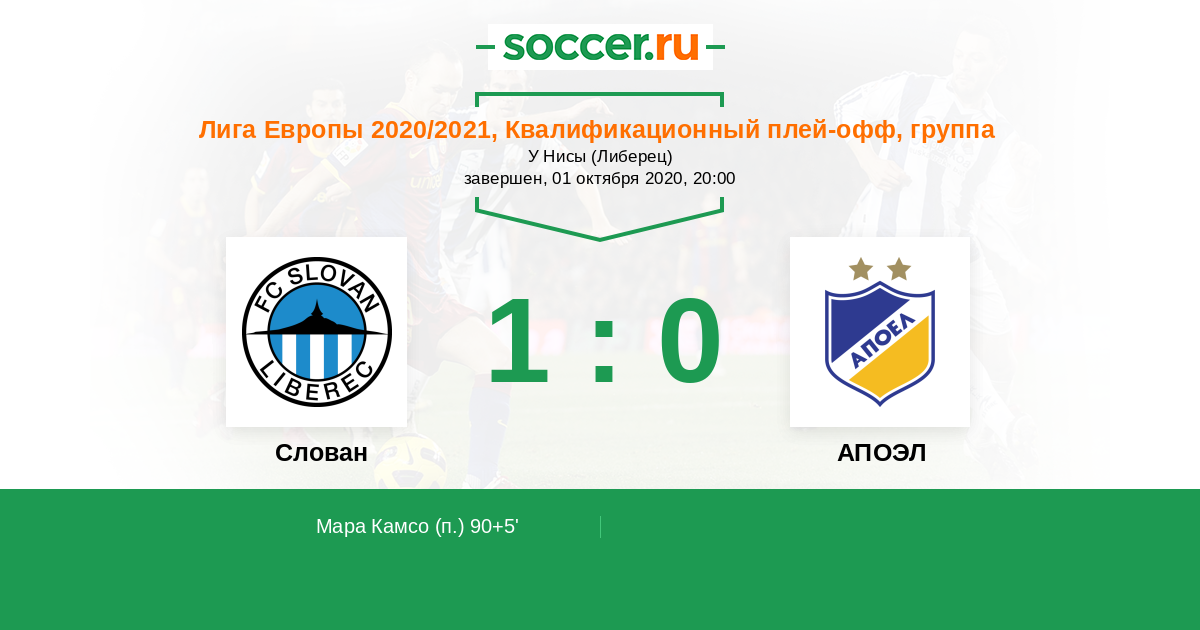 Слован - АПОЭЛ: обзор матча 1 октября 2020