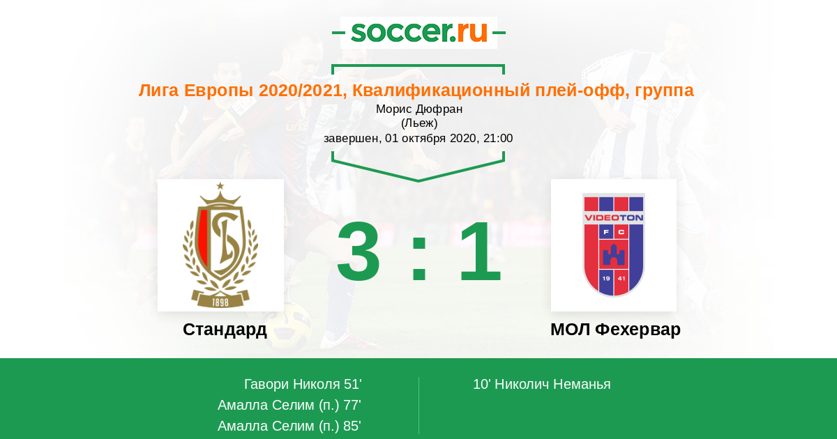 Стандард - МОЛ Фехервар: обзор матча 1 октября 2020