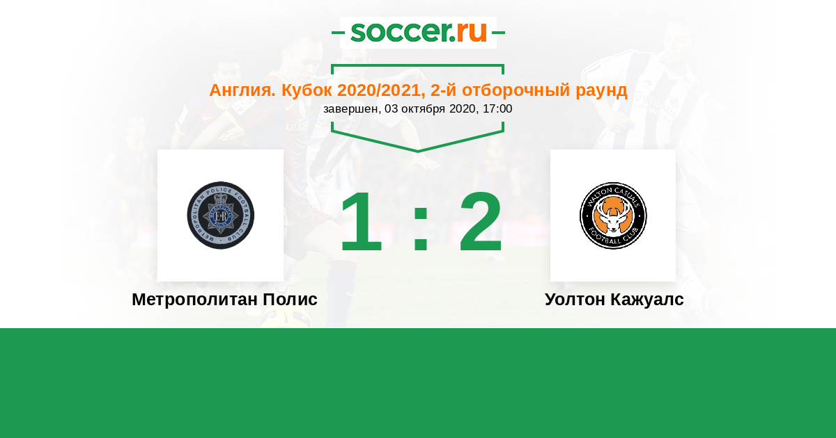 Метрополитан Полис - Уолтон Кажуалс: обзор матча 3 октября 2020