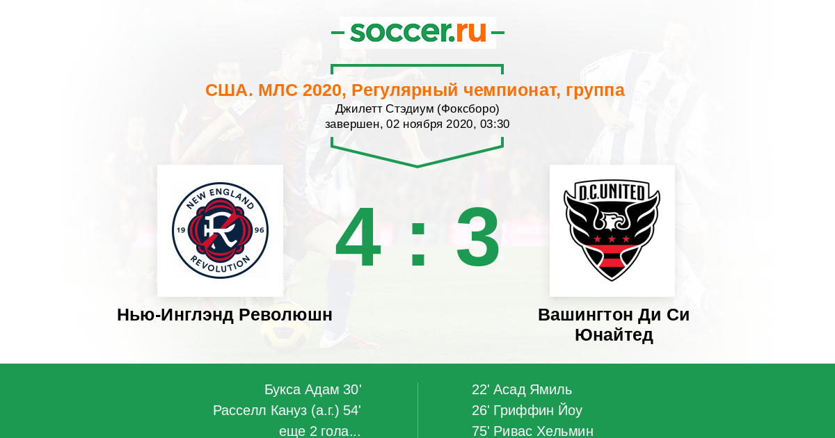 Нью-Инглэнд Революшн - Вашингтон Ди Си Юнайтед: обзор матча 2 ноября 2020