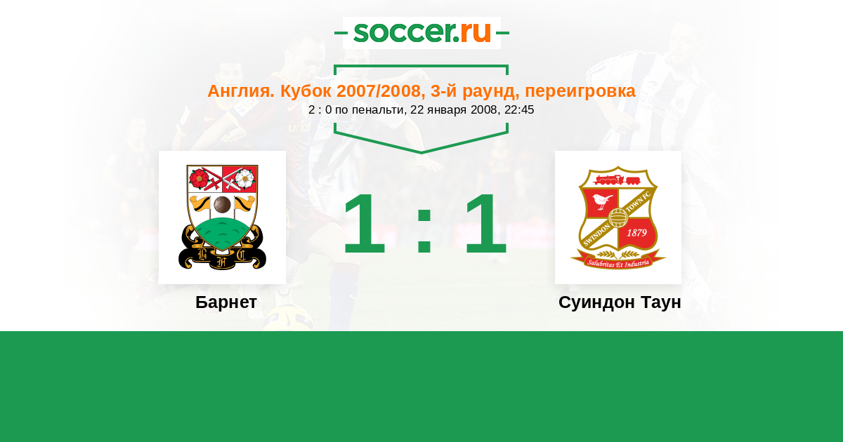 Барнет - Суиндон Таун: обзор матча 22 января 2008