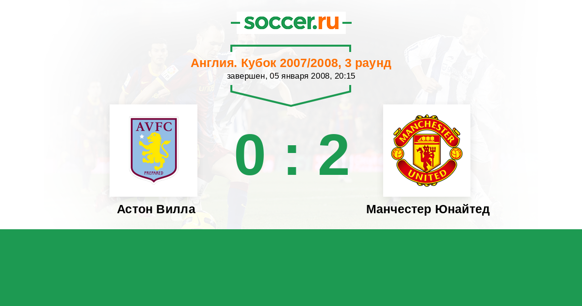 Астон Вилла - Манчестер Юнайтед: обзор матча 5 января 2008