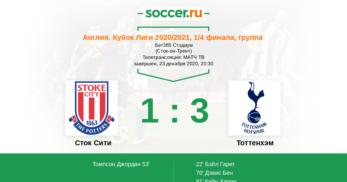 Сток Сити - Тоттенхэм: обзор матча 23 декабря 2020
