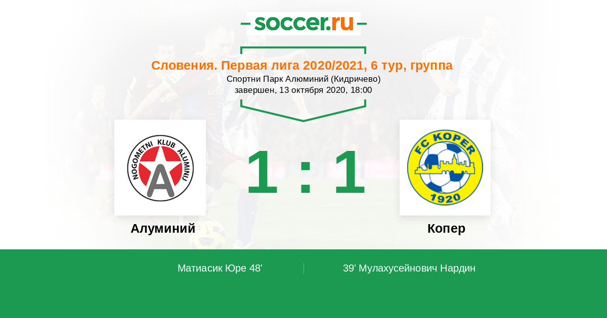 Алуминий - Копер: обзор матча 13 октября 2020