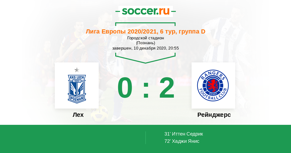 Лех - Рейнджерс: обзор матча 10 декабря 2020