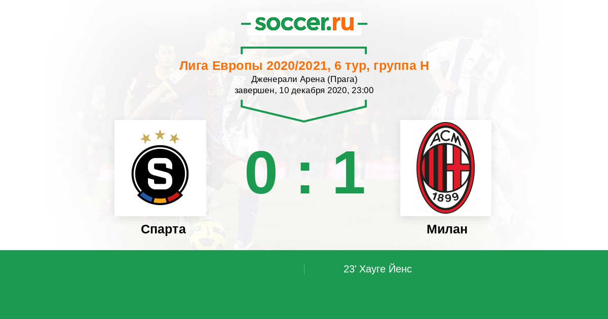 Спарта - Милан: обзор матча 10 декабря 2020