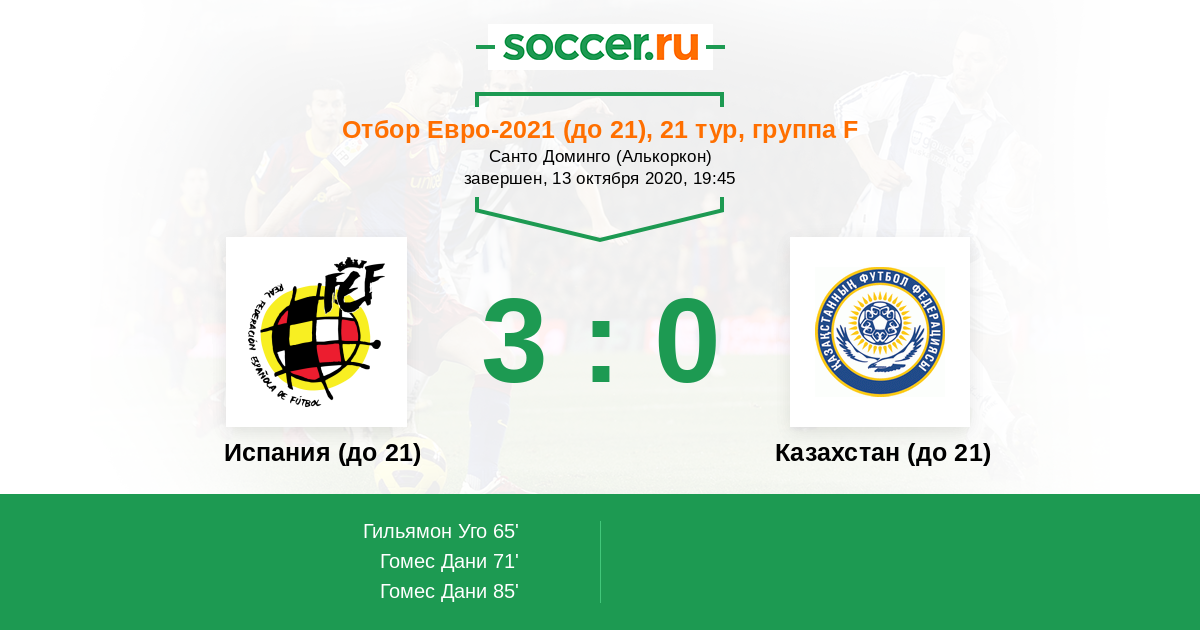 Испания (до 21) - Казахстан (до 21): обзор матча 13 октября 2020