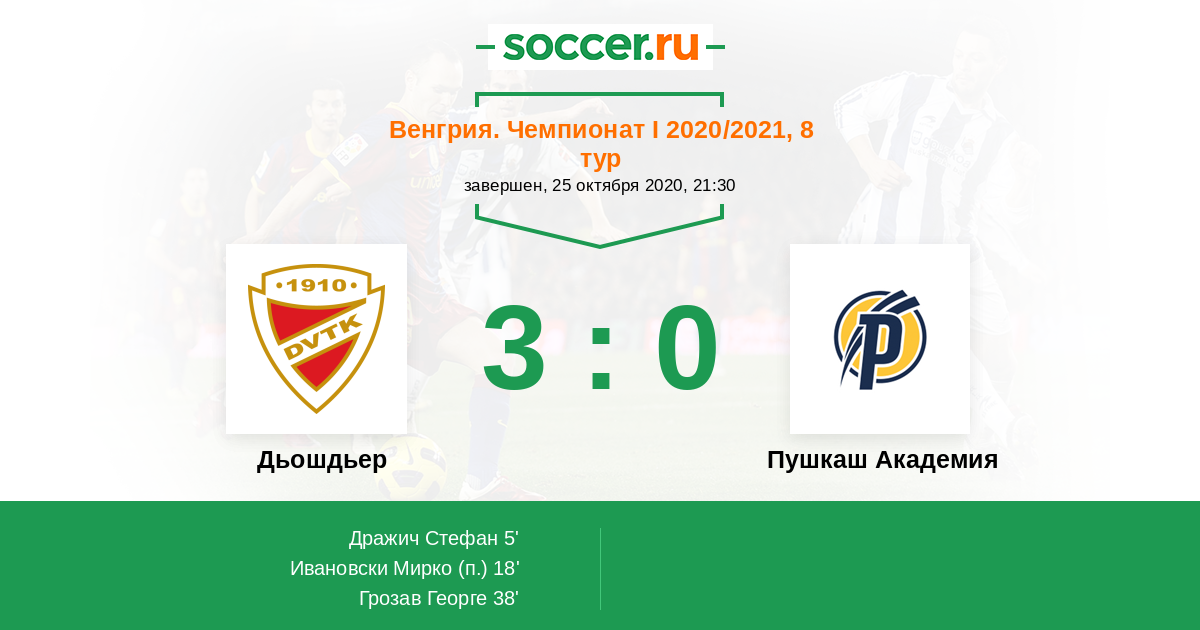 Дьошдьер - Пушкаш Академия: обзор матча 25 октября 2020