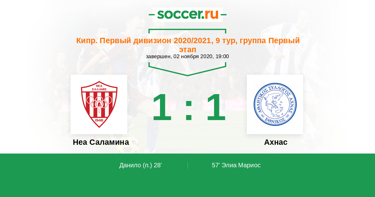 Неа Саламина - Ахнас: обзор матча 2 ноября 2020