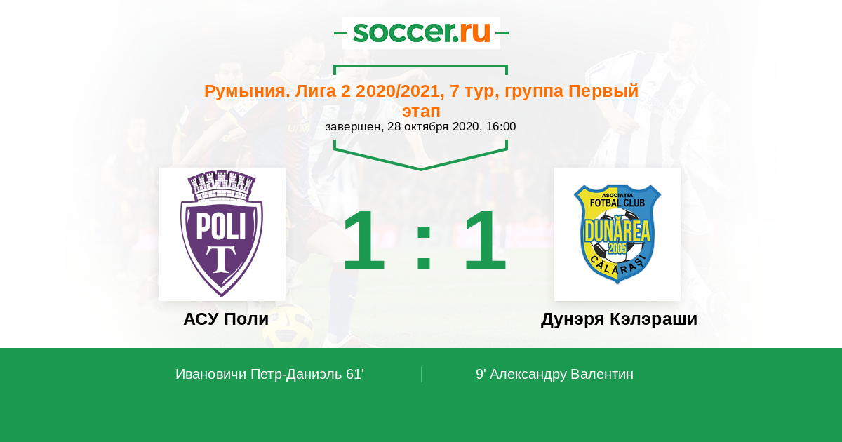 АСУ Поли - Дунэря Кэлэраши: обзор матча 28 октября 2020
