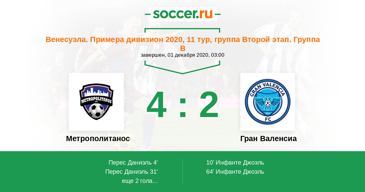 Метрополитанос - Гран Валенсиа: обзор матча 1 декабря 2020