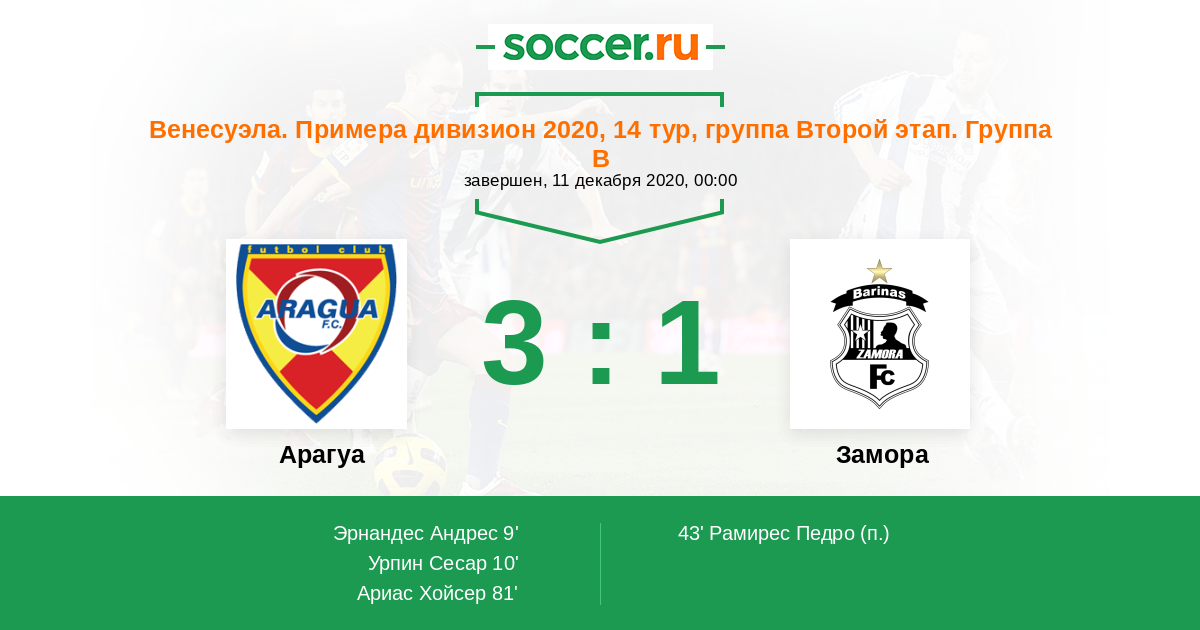 Арагуа - Замора: обзор матча 11 декабря 2020