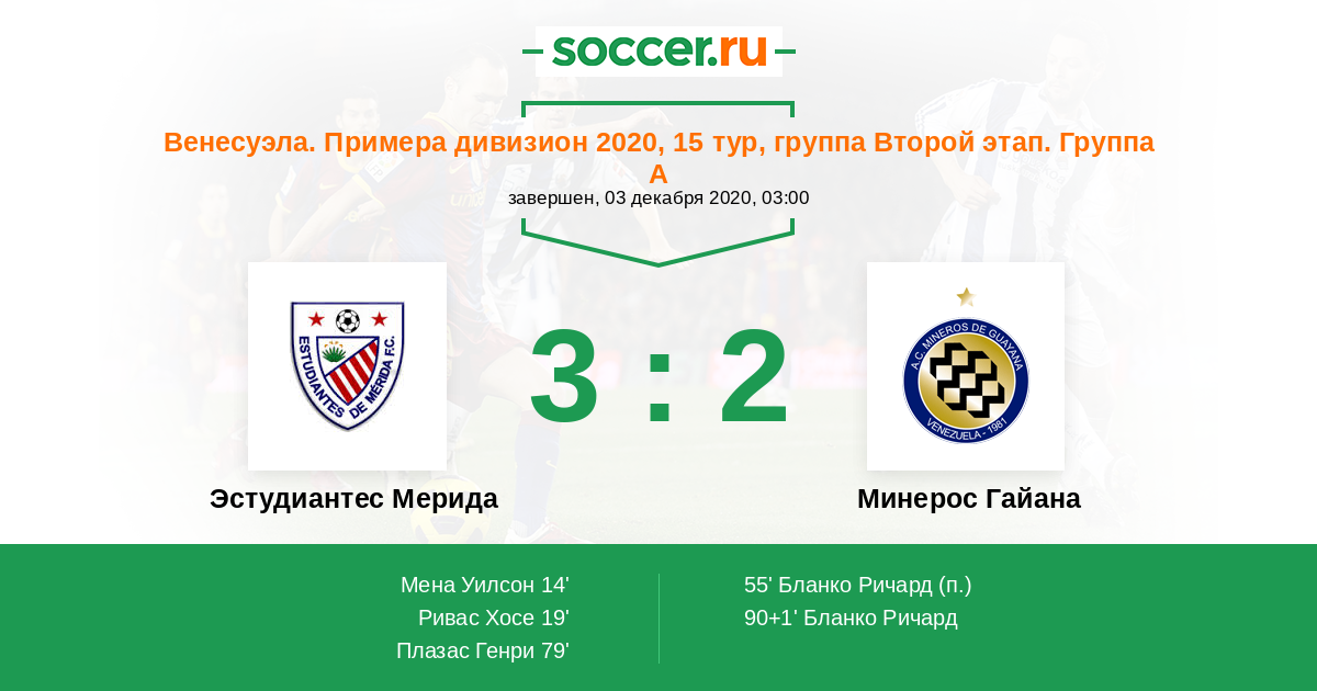 Эстудиантес Мерида - Минерос Гайана: обзор матча 3 декабря 2020