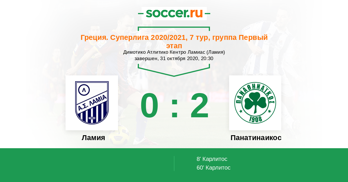 Ламия - Панатинаикос: обзор матча 31 октября 2020