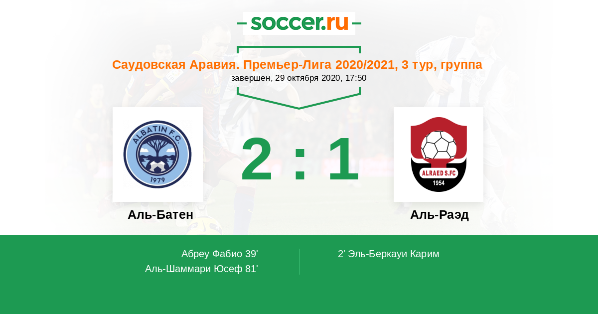 Аль-Батен - Аль-Раэд: обзор матча 29 октября 2020