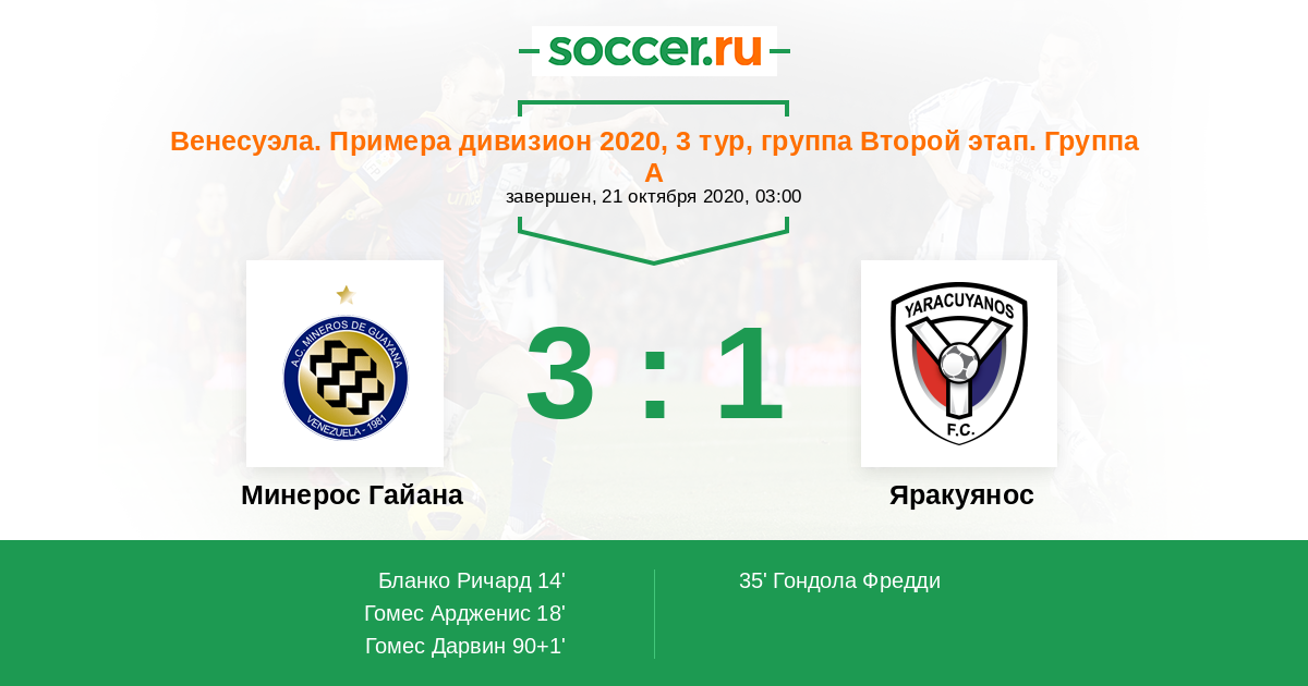 Минерос Гайана - Яракуянос: обзор матча 21 октября 2020