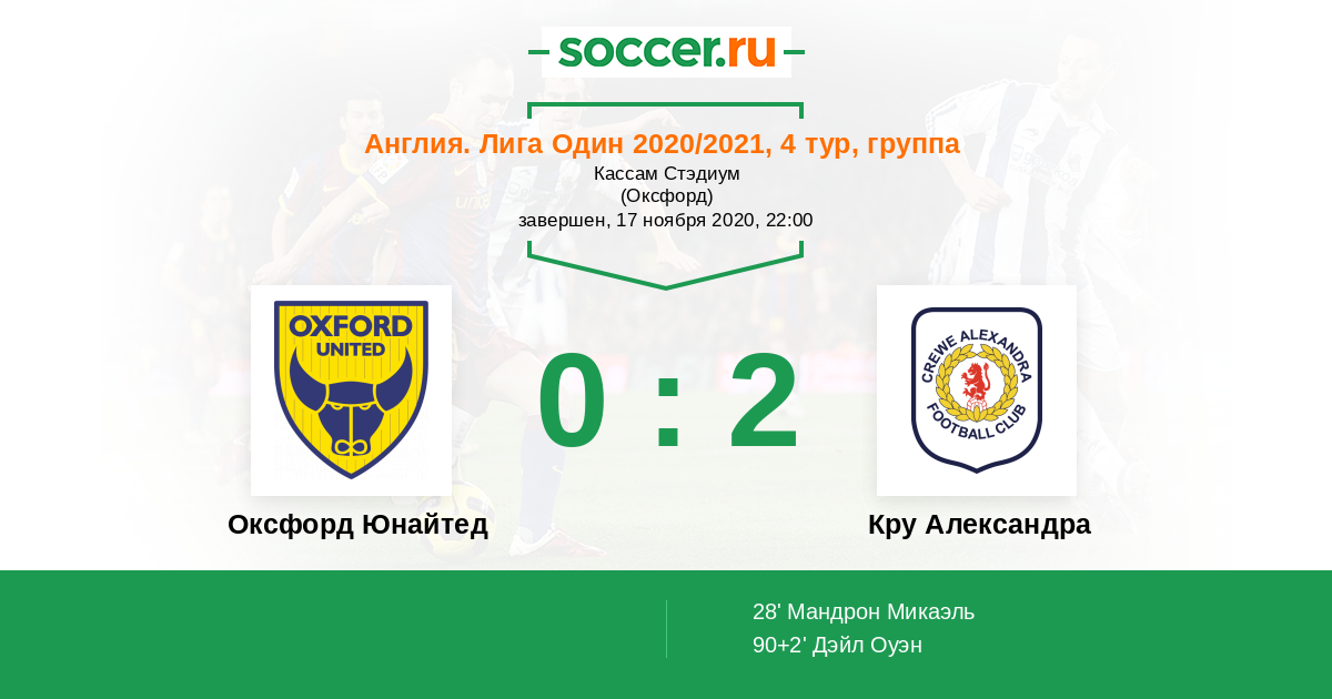 Оксфорд Юнайтед - Кру Александра: обзор матча 17 ноября 2020