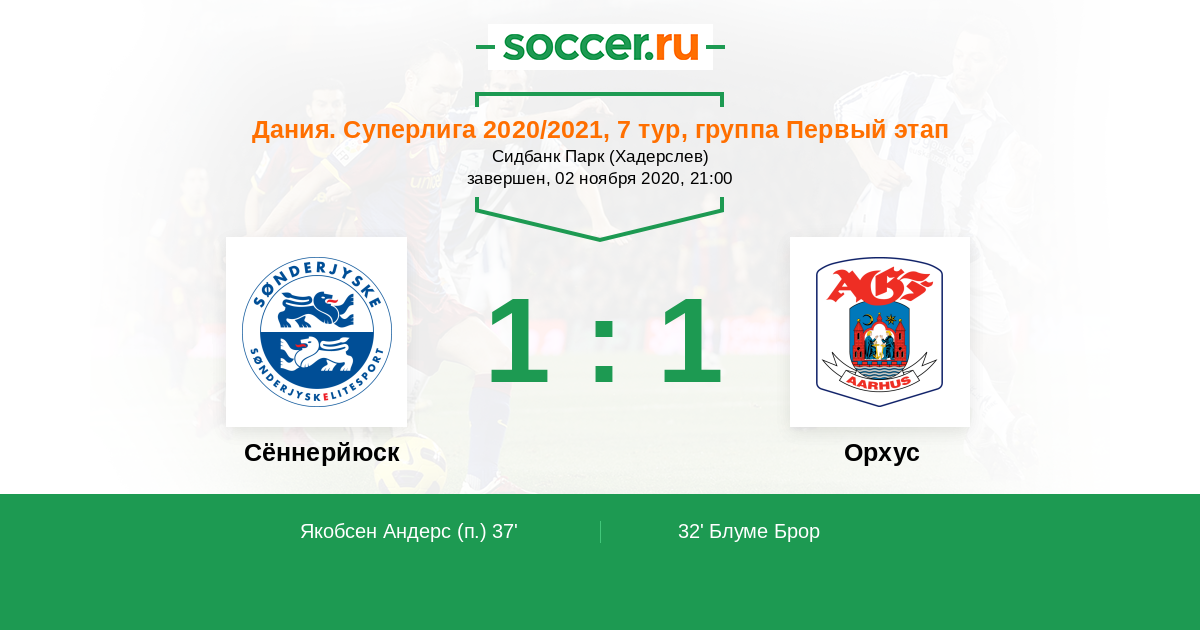 Сённерйюск - Орхус: обзор матча 2 ноября 2020