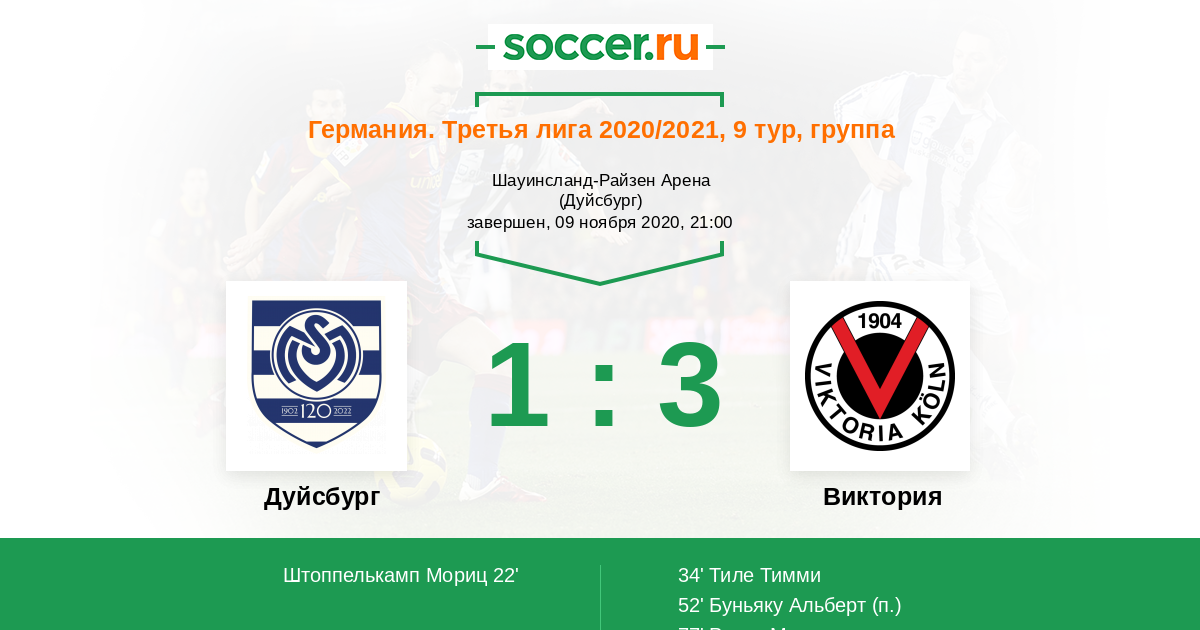 Дуйсбург - Виктория: обзор матча 9 ноября 2020