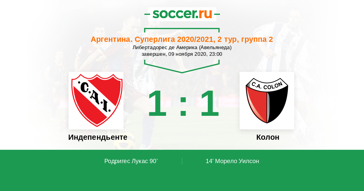 Индепендьенте - Колон: обзор матча 9 ноября 2020