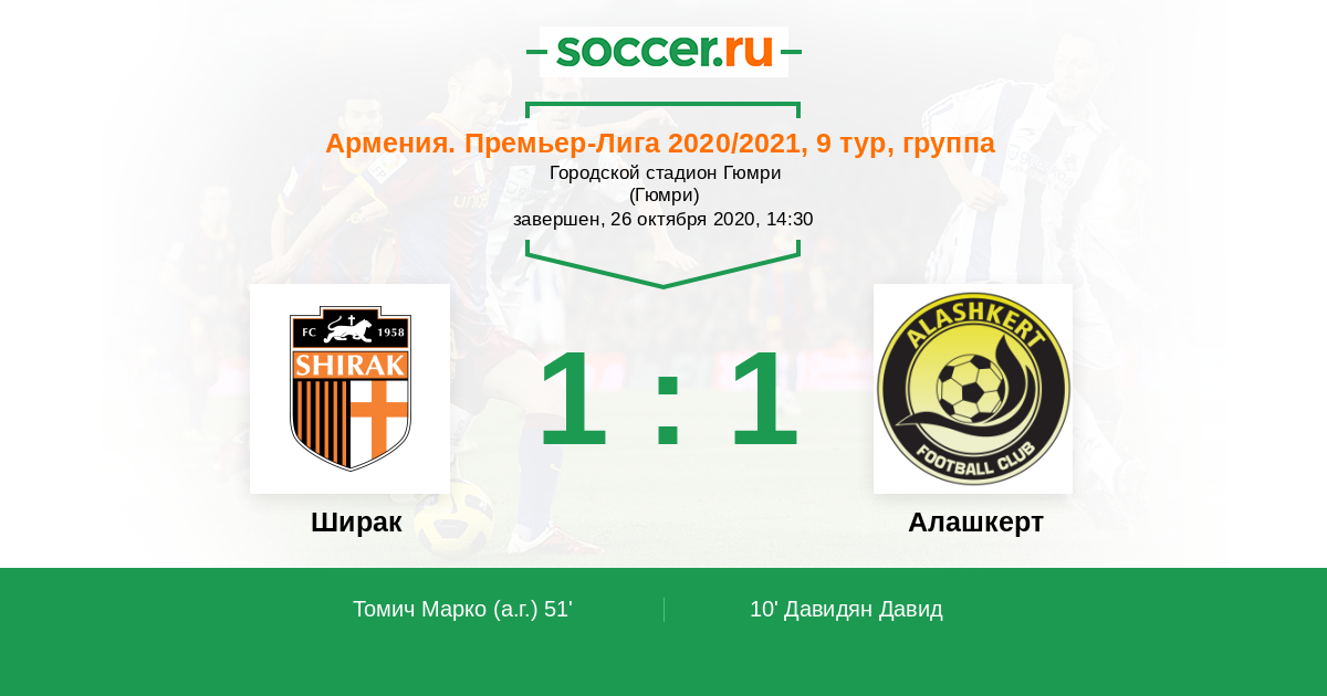 Ширак - Алашкерт: обзор матча 26 октября 2020