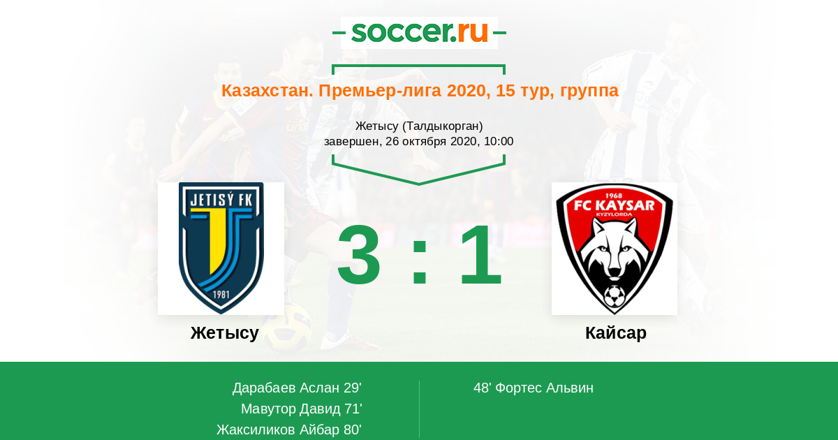 Жетысу - Кайсар: обзор матча 26 октября 2020