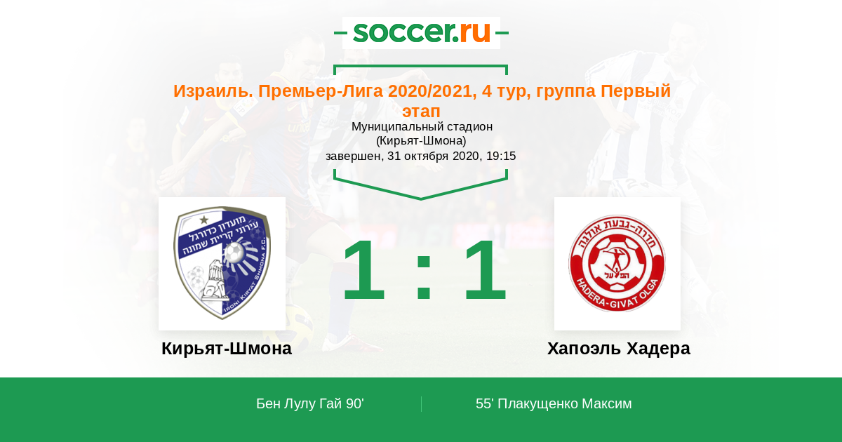 Кирьят-Шмона - Хапоэль Хадера: обзор матча 31 октября 2020