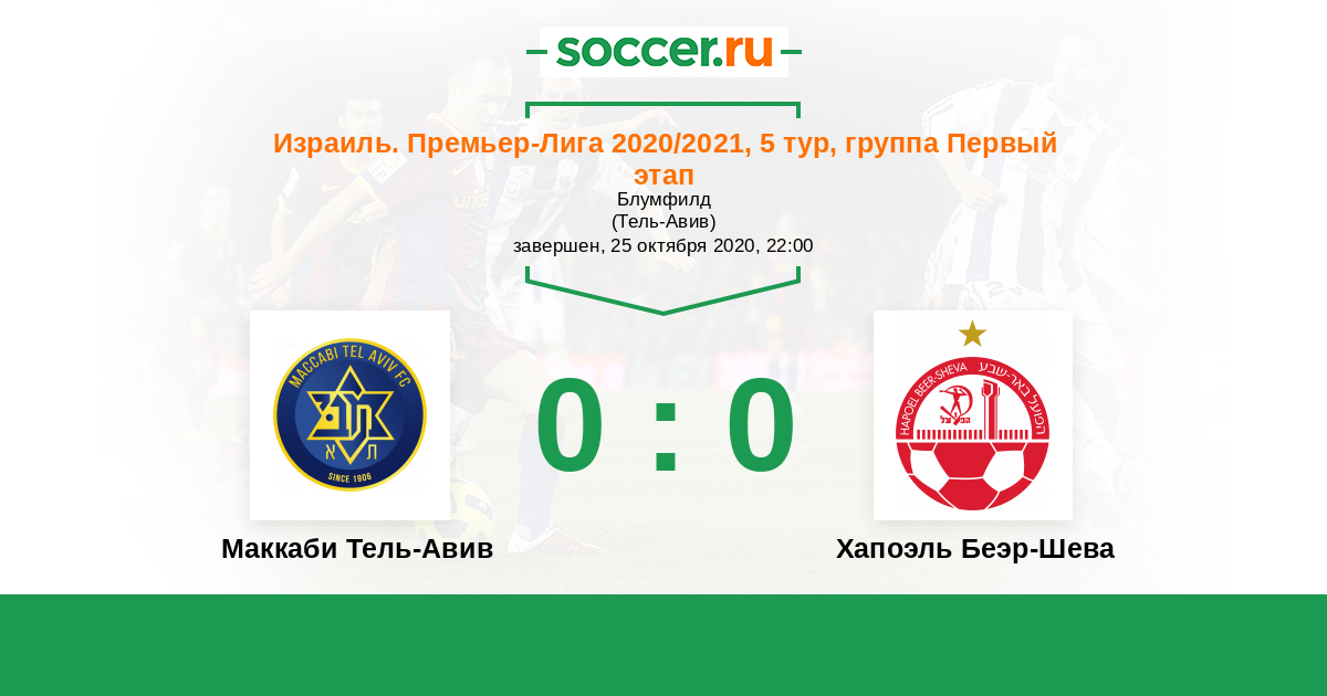 Маккаби Тель-Авив - Хапоэль Беэр-Шева: обзор матча 25 октября 2020