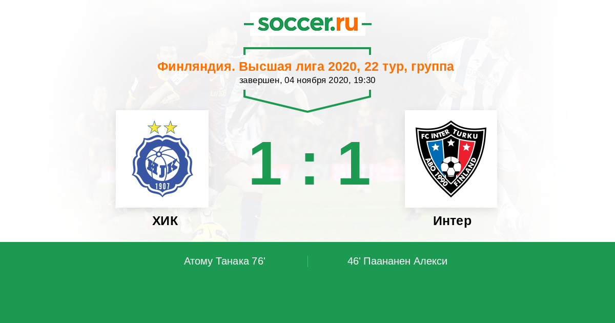ХИК - Интер: обзор матча 4 ноября 2020