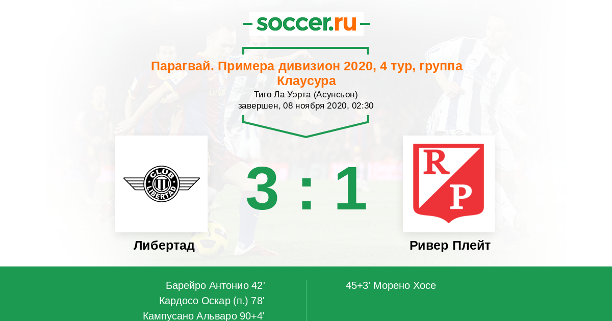 Либертад - Ривер Плейт: обзор матча 8 ноября 2020