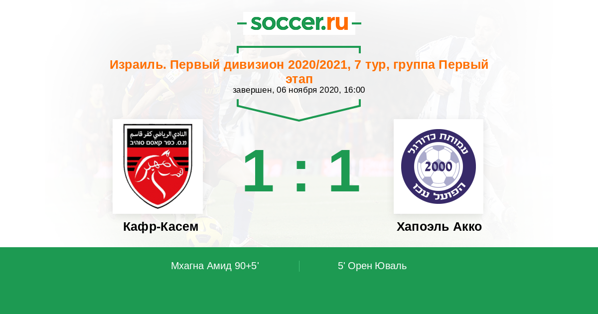 Кафр-Касем - Хапоэль Акко: обзор матча 6 ноября 2020
