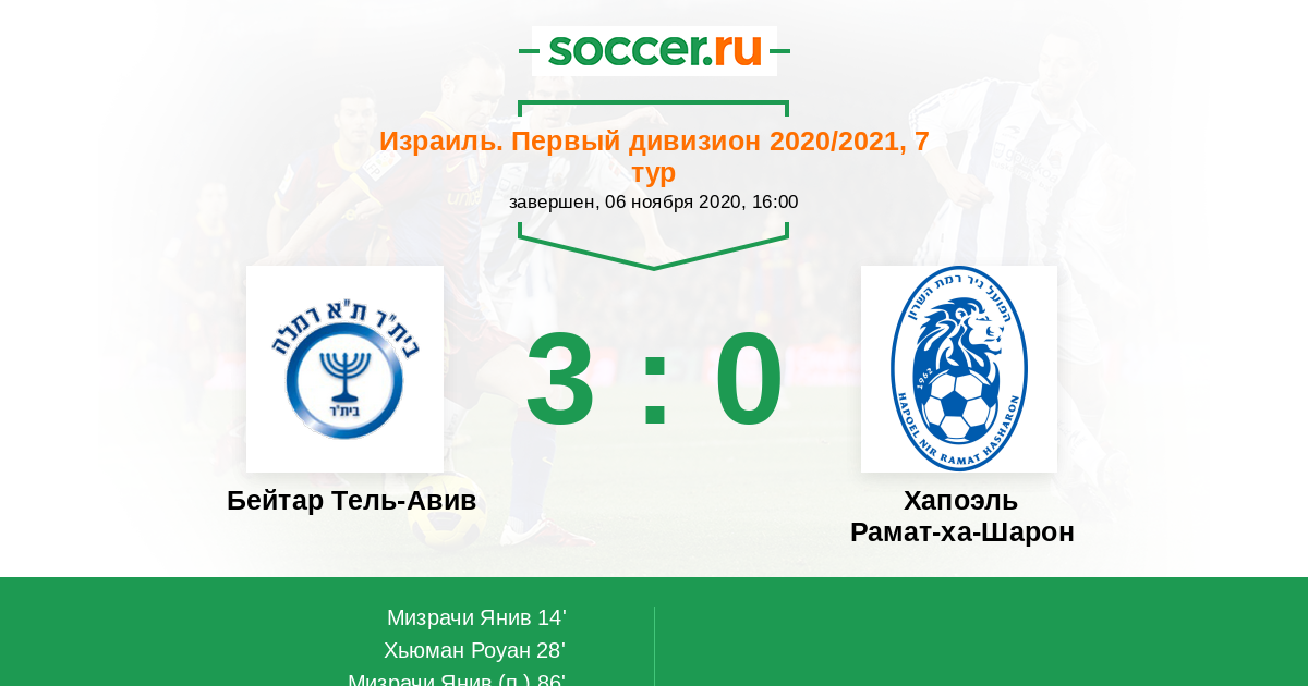 Бейтар Тель-Авив - Хапоэль Рамат-ха-Шарон: обзор матча 6 ноября 2020