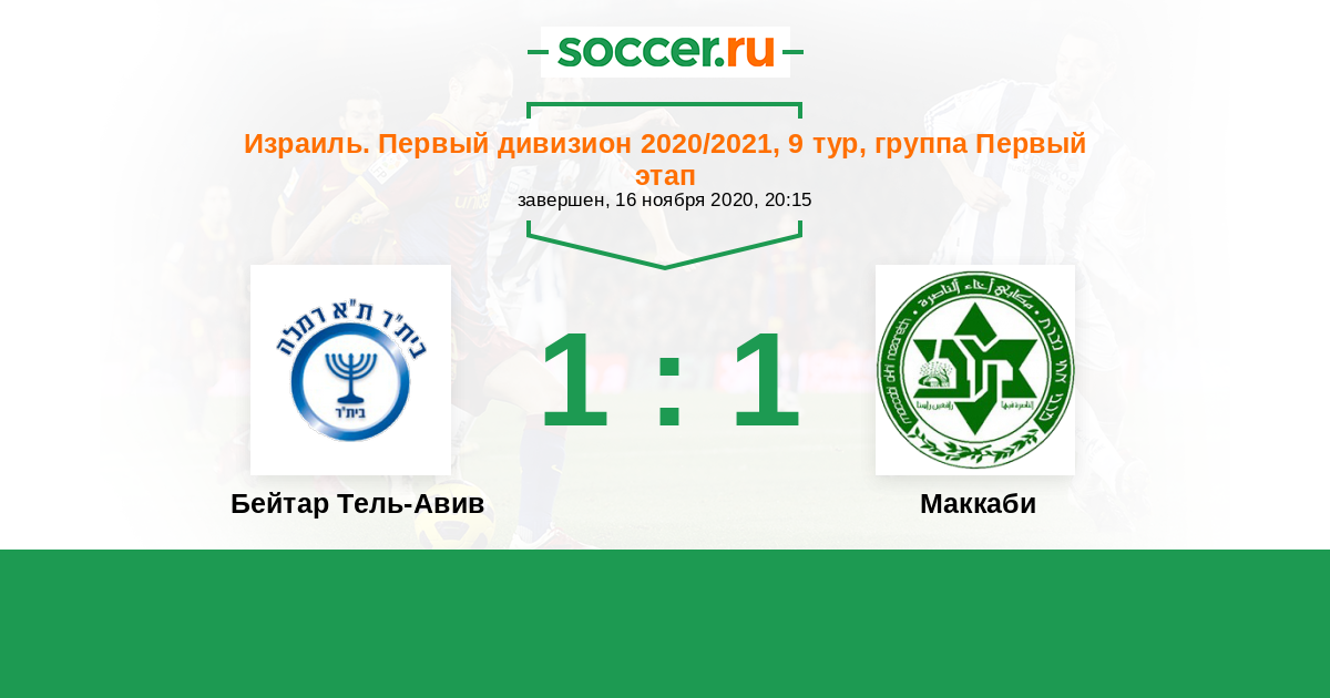 Бейтар Тель-Авив - Маккаби: обзор матча 16 ноября 2020
