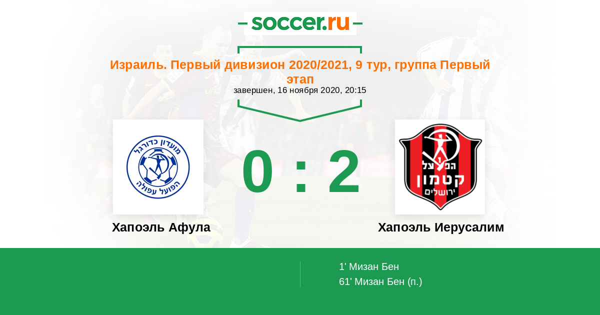 Хапоэль Афула - Хапоэль Иерусалим: обзор матча 16 ноября 2020