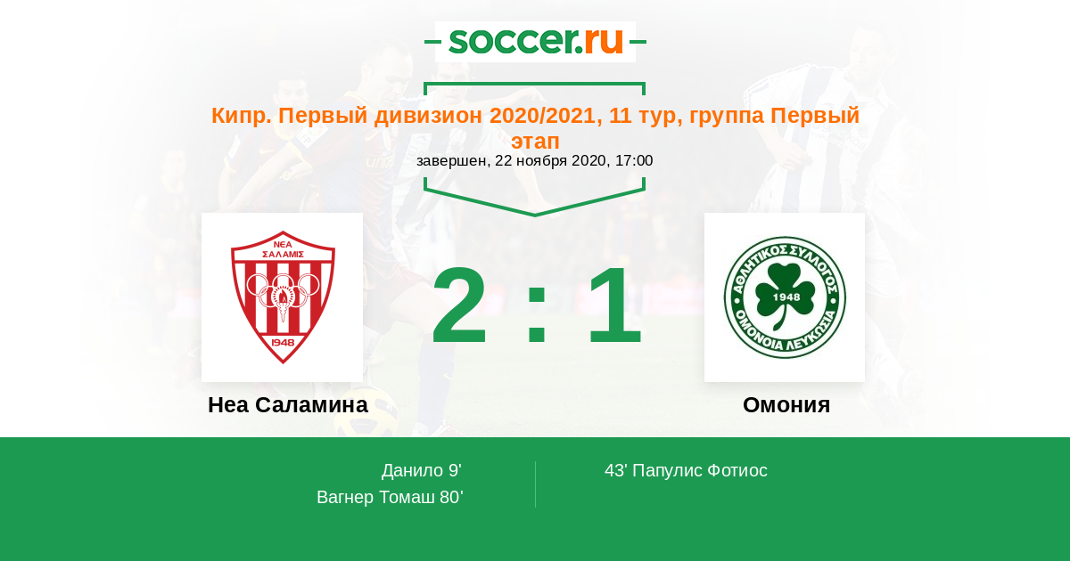 Неа Саламина - Омония: обзор матча 22 ноября 2020