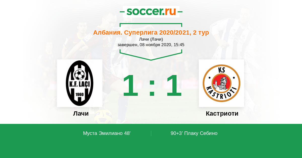 Лачи - Кастриоти: обзор матча 8 ноября 2020