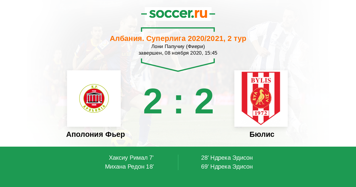 Аполония Фьер - Бюлис: обзор матча 8 ноября 2020