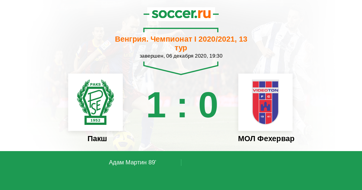 Пакш - МОЛ Фехервар: обзор матча 6 декабря 2020