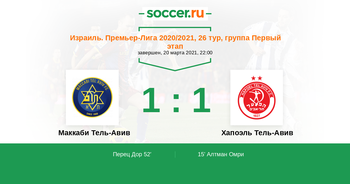 Маккаби Тель-Авив - Хапоэль Тель-Авив: обзор матча 20 марта 2021