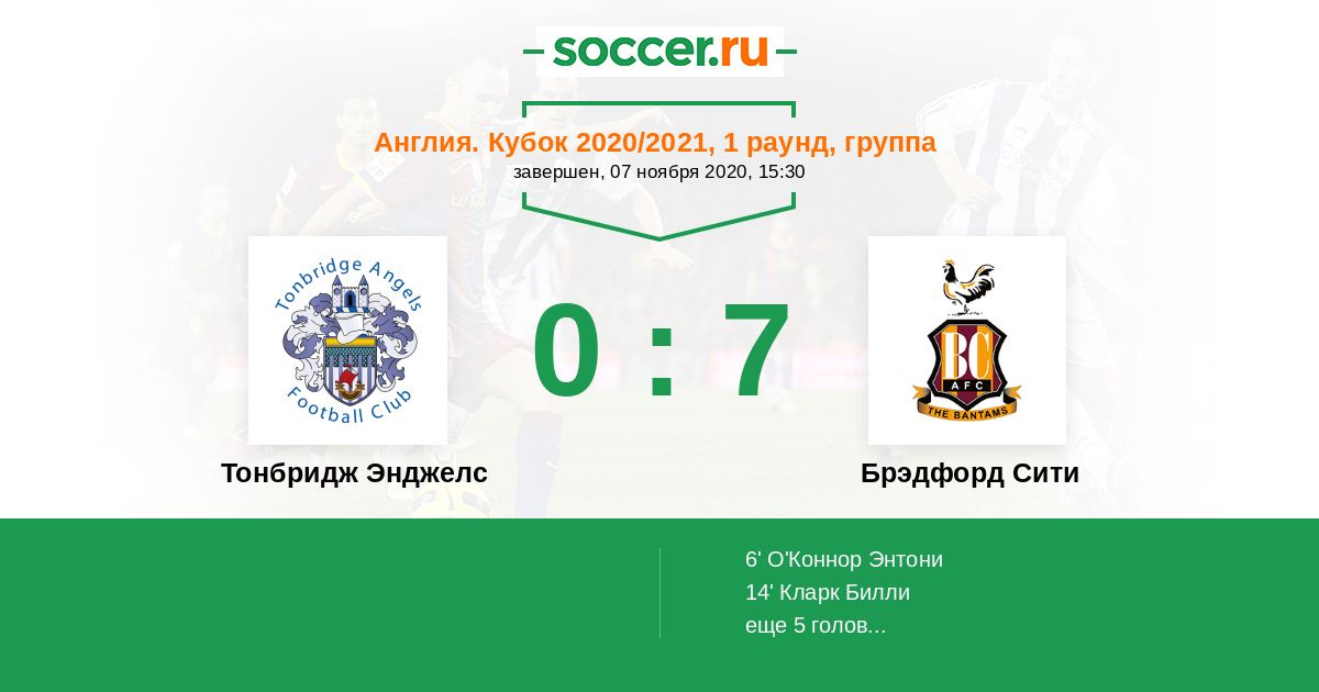 Тонбридж Энджелс - Брэдфорд Сити: обзор матча 7 ноября 2020